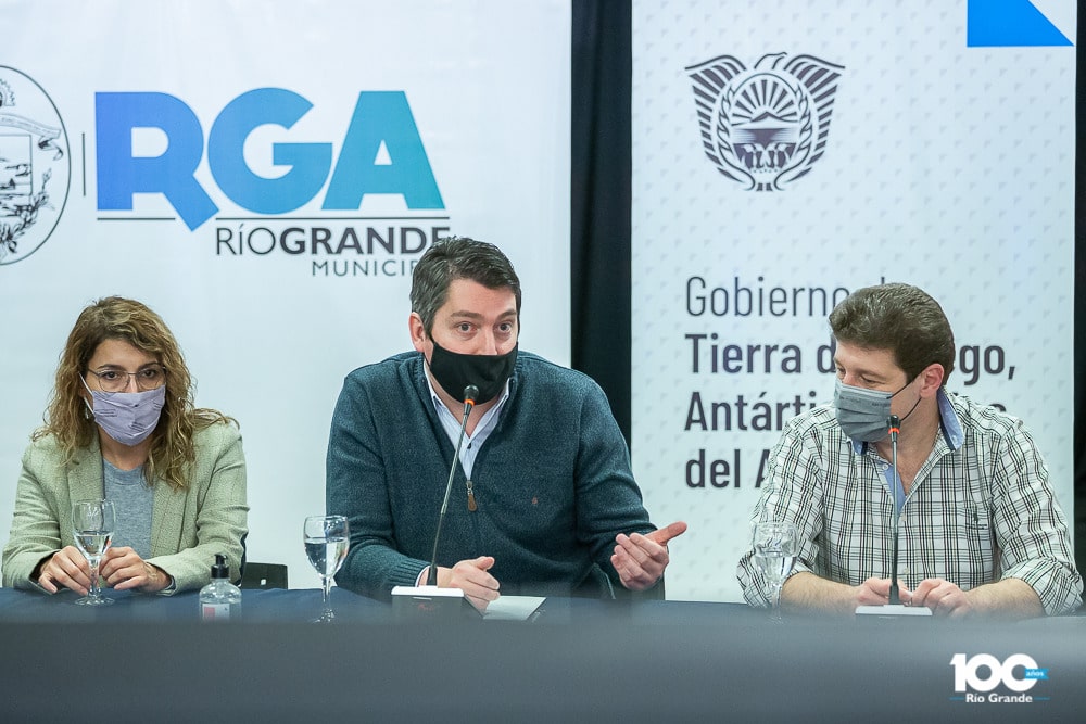 El intendente Martín Perez, junto al gobernador Gustavo Melella, y el administrador del Ente Nacional de Obras Hídricas y de Saneamiento (ENOHSA), Enrique Cresto, firmaron importante convenio a través del cual se proyecta la construcción de una planta de pretratamiento de efluentes cloacales y su correspondiente emisario submarino en la ciudad de Río Grande.