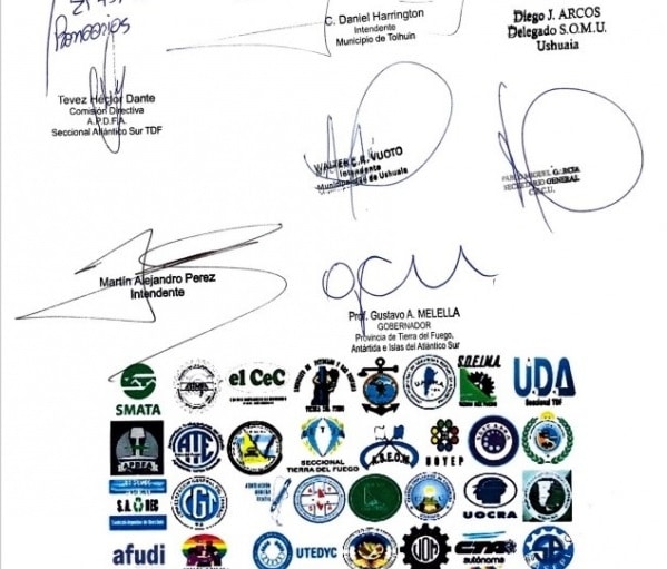 El texto fue presentado ayer, en una conferencia de prensa que se realizó en la ciudad de Tolhuin, y fue firmado además por el gobernador, Gustavo Melella, y los intendentes de Ushuaia, Walter Vuoto, de Río Grande, Martín Perez, y de Tolhuin, Daniel Harrington. Vale mencionar que la iniciativa fue mocionada por el titular de ASIMRA, Javier Escobar, y se aprobó por unanimidad. También aportaron a la elaboración de la carta, entre otros, el secretario General de los Petroleros Privados, Luis Sosa, y el secretario de Prensa del mismo gremio, René Vergara.