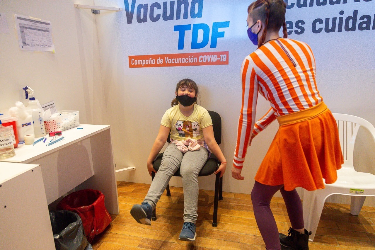 En el marco de la campaña de vacunación destinada a las infancias, la Secretaría de Cultura junto a la Secretaría de Educación del Ministerio de Educación, Cultura, Ciencia y Tecnología, están presentes en los vacunatorios de Río Grande y Ushuaia acompañando a las infancias a recibir las dosis de vacunas con payasos y malabaristas.
