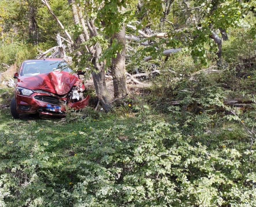 Sucedió ayer por la tarde, en el Km. 20 de la Ruta J, cuando una mujer al volante de un auto de alquiler, un Chevrolet Onix, perdió el control del vehículo y chocó contra un tronco de grandes dimensiones.