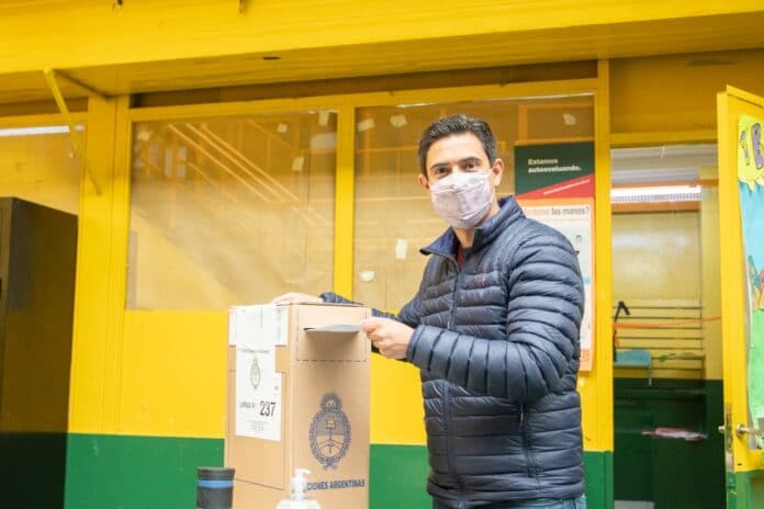 El candidato a Diputado por el Frente de Todos, Guillermo Fernández, votó temprano en la Escuela Austral de Enseñanza Bilingüe de Río Grande acompañado por el Gobernador Gustavo Melella y referentes de FORJA Tierra del Fuego.