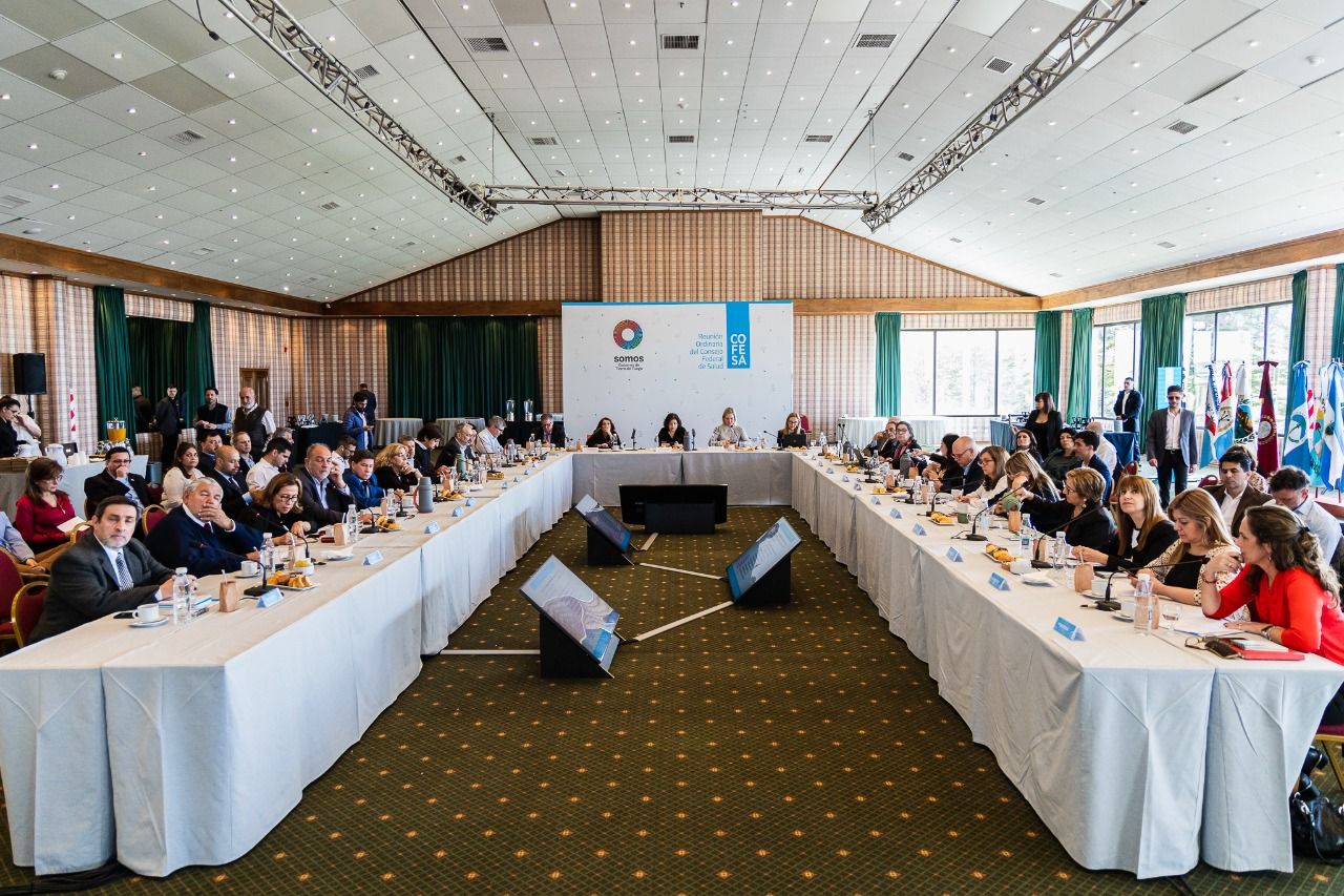 El Gobernador Gustavo Melella, junto a la ministra de Salud de Nación, Carla Vizzotti, encabezó este martes la apertura de la Reunión Ordinaria del Consejo Federal de Salud (COFESA), realizado en Ushuaia. Estuvieron acompañados por el ministro Jefe de Gabinete, Agustín Tita y la titular de la cartera sanitaria de la Provincia, Judit Di Giglio.