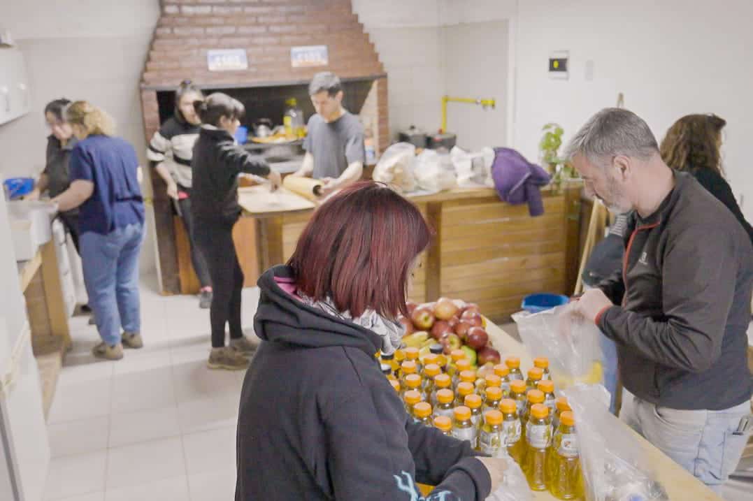 “Desde acá estamos realizando las viandas necesarias y hay otra tanda de gente que sale desde el polideportivo de Tolhuin con su vianda preparada en una cocina que instaló el Municipio”, agregó.