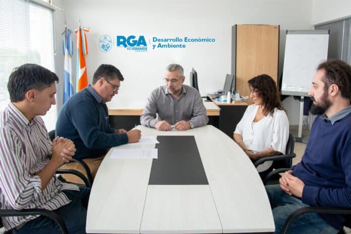 Participaron de la firma el Ing. Depetris de la empresa MPV Ingenieria Depetris, Arq, Lucas Nanclares de DIPROSE, Matías Lapadula, secretario de Desarrollo Económico y Ambiente, Silvina Monaco secretaria de Planificación, inversion y servicios públicos, y Facundo Armas Director General de Desarrollo Productivo del Municipio de Río Grande.