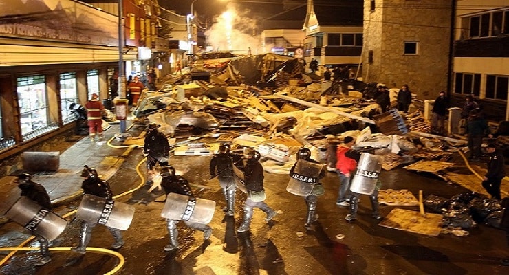Las imágenes que circularon a través de las redes sociales, mostraron claramente que varias de las carpas que habían sido levantadas en el lugar fueron incendiadas intencionalmente por efectivos policiales y civiles no identificados.