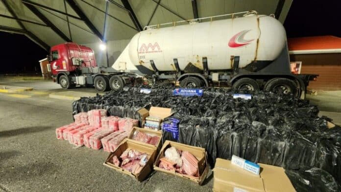 Un argentino identificado como Alejandro Marcelo Tarifa fue sorprendido con 66 mil cajas de cigarrillos ocultas en un camión cementero. El imputado fue formalizado en el Juzgado de Porvenir y deberá firmar quincenalmente en Carabineros, hasta que concluya el procedimiento judicial.