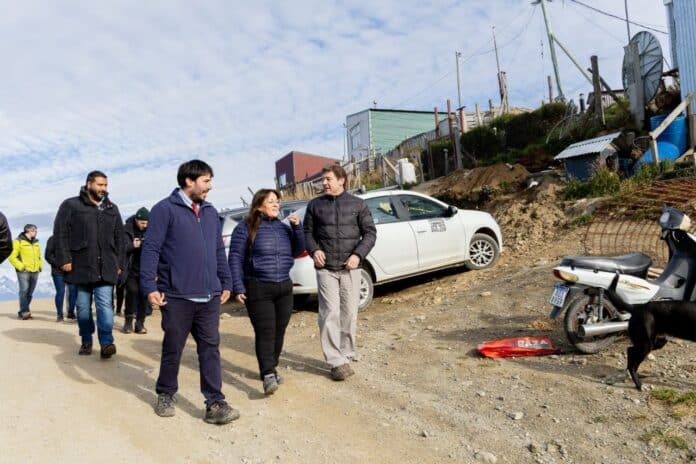 El Gobernador Gustavo Melella, acompañado por la ministra de Obras y Servicios Públicos, y el presidente de la Dirección Provincial de Obras y Servicios Sanitarios (DPOSS), Cristian Pereyra; recorrieron la etapa final de la obra para llevar los servicios de agua y cloacas al barrio La Bolsita, en la ciudad de Ushuaia.
