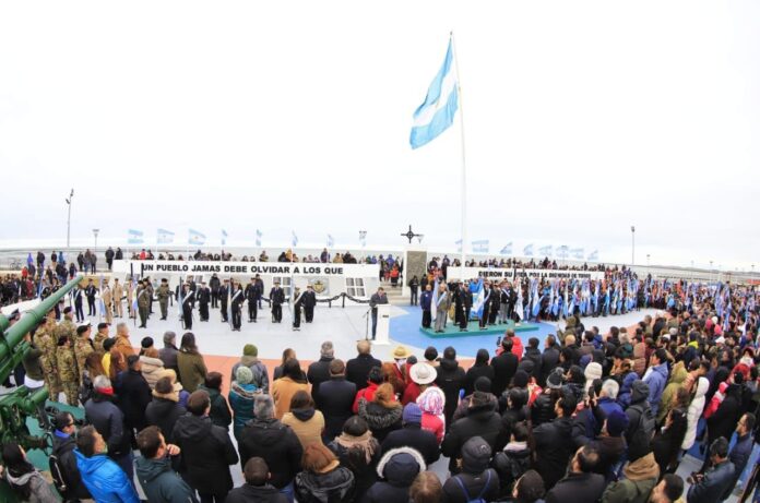 El Intendente de Río Grande enfatizó que “para honrar a nuestros héroes que dejaron su vida no alcanza únicamente con hacer memoria de la gloriosa gesta de 1982, sino que también hay que defender en tiempo presente la soberanía territorial, marítima, económica, industrial, científica, tecnológica y satelital de nuestro país”, y señaló que “solo así como ciudad, como provincia y como Nación nos acercaremos a nuestro propósito de recuperar nuestra soberanía en las Islas Malvinas”.